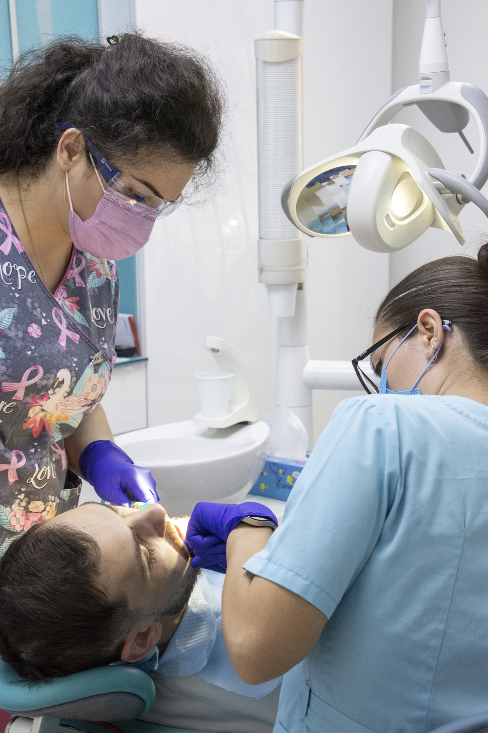 Inserarea unui implant dentar este un proces chirurgical care se desfășoară în mai multe etape. Prima etapă constă în plasarea implantului propriu-zis, care este un dispozitiv din titan ce va fi integrat în osul maxilar. Această procedură se realizează sub anestezie locală, iar durata sa variază în funcție de complexitatea cazului, dar în general durează între 1 și 2 ore. După inserarea implantului, pacientul va avea nevoie de o perioadă de recuperare, timp în care osul va fuziona cu implantul într-un proces numit osteointegrare.